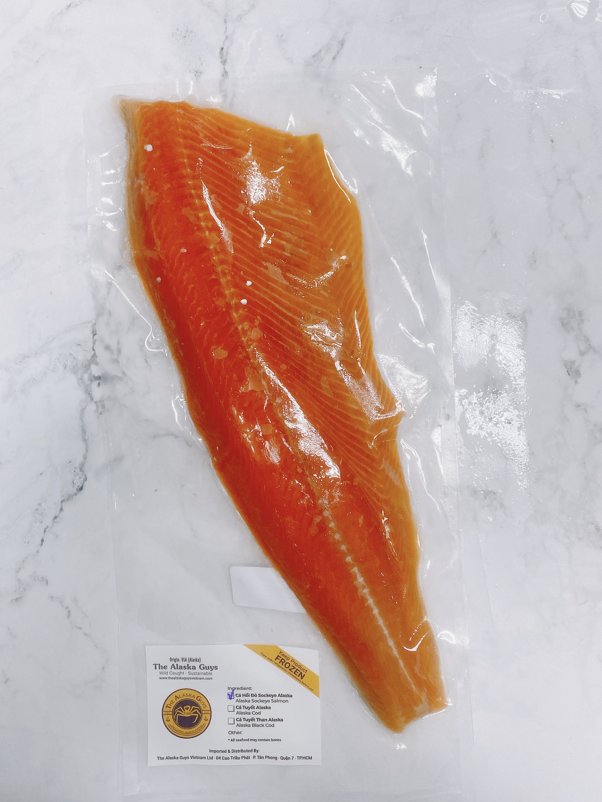 Cá hồi đỏ Sockeye Fillet được đóng gói hút chân không với trọng lượng trung bình 200 gr/ miếng Fillet