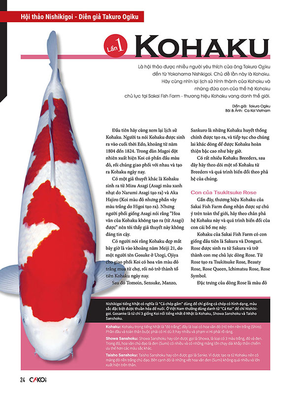 “Cá Koi Vietnam – Guide to Nishikigoi Life” là phiên bản tiếng Việt của Gekkan Nishikigoi (Koi Magazine do Shinkokai Nhật Bản phát hành), phát hành hàng Quý tại Việt Nam. Có trong tay quyển