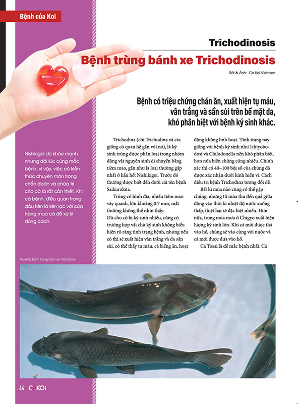 “Cá Koi Vietnam – Guide to Nishikigoi Life” là phiên bản tiếng Việt của Gekkan Nishikigoi (Koi Magazine do Shinkokai Nhật Bản phát hành), phát hành hàng Quý tại Việt Nam. Có trong tay quyển