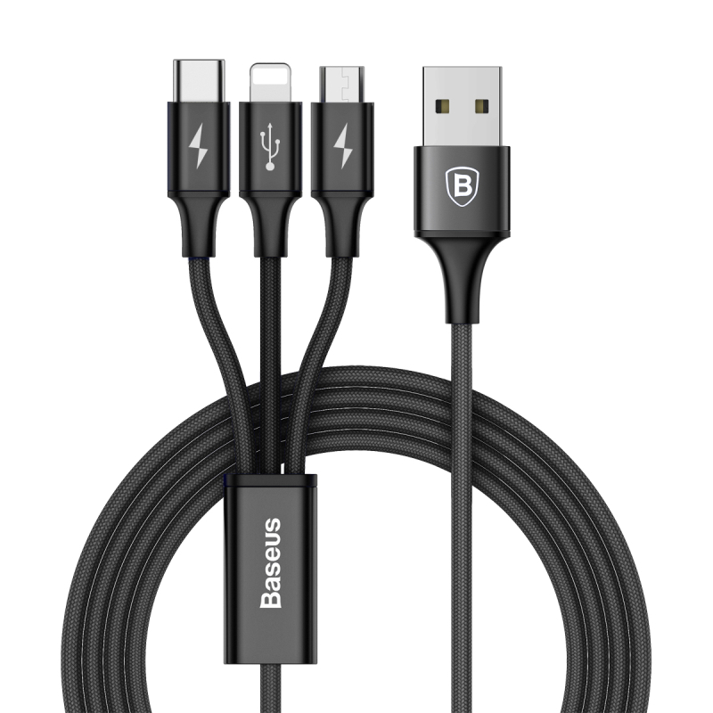 Cáp sạc nhanh 3A Baseus Rapid kết nối 3 đầu Type-C /Micro/ iPhone dây siêu bền cho Smartphone ( 3 màu ) - Hàng chính hãng