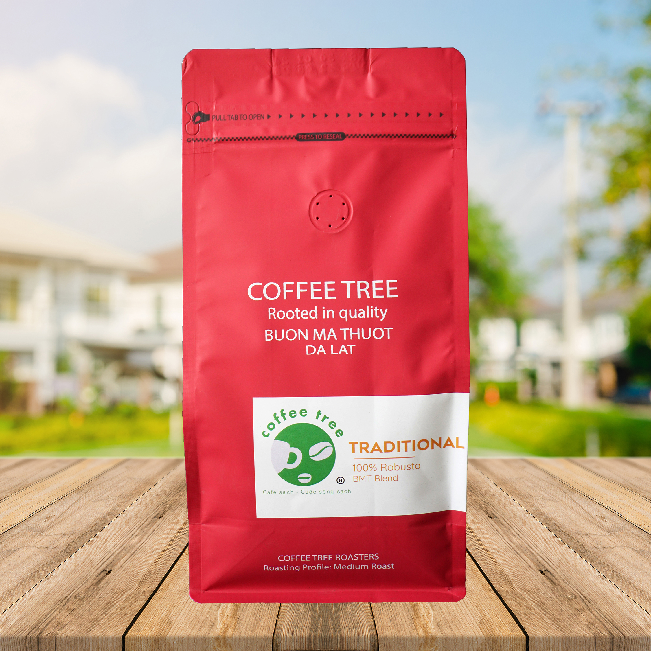 Rang mộc thơm tự nhiên Được sản xuất theo hệ thống công nghệ tiên tiến trên dây chuyền hiện đại của Hà Lan Nguyên liệu tạo nên sản phẩm theo quy trình khép khín từ Farm to Cup được chọn lọc kĩ càng từ BMT, Đà Lạt. Cà phê 100% bột rang xay nguyên chất phù hợp pha phin lẫn pha máy Cafe Robusta là dòng cafe mang tới hương vị hấp dẫn, thơm ngon đăc trưng riêng. Gu vừa, vị chuẩn thích hợp đen đá sữa đá pha phin lẫn pha máy Bao bì cao cấp có van 1 chiều bao zip kéo bảo quản café thơm lâu. Trọng lượng 500gr bột Cà phê Coffee Tree truyền thống số 2 Được chọn lọc từ những hạt cà phê Robusta, Arabica, Moka chất lượng hàng đầu