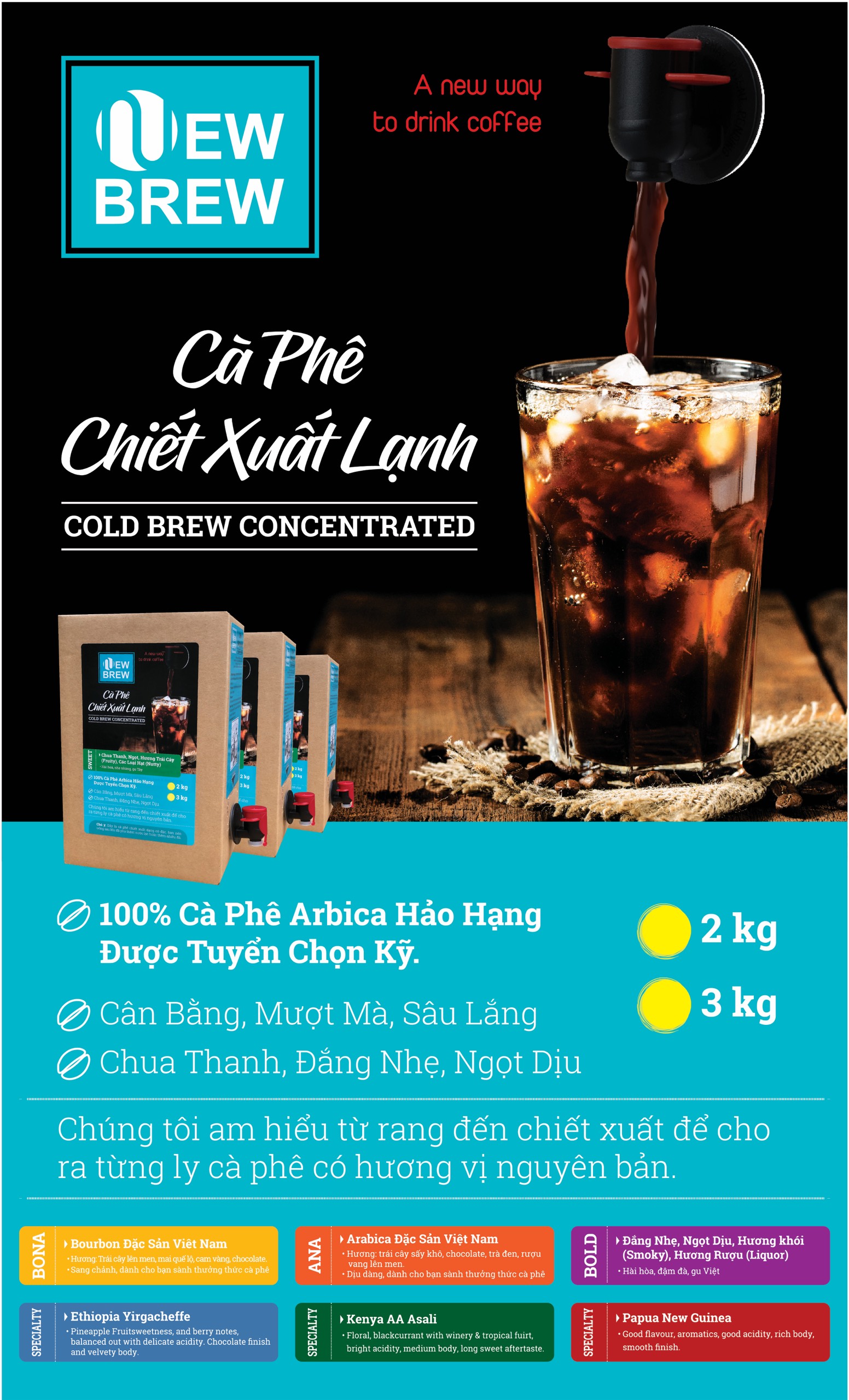 New Brew tuy không phải là sản phẩm cà phê chiết xuất lạnh duy nhất ở thị trường Việt Nam nhưng là sản phẩm ĐẦU TIÊN và DUY NHẤT có thể lưu trữ lên tới 6 tháng (chưa mở nắp) mà vẫn giữ được chất lượng ổn định như khi vừa mới pha.