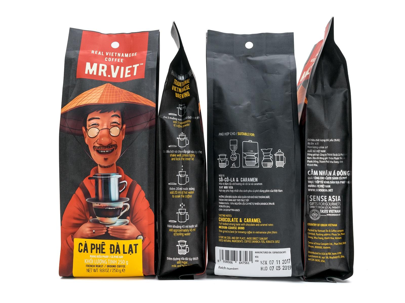 ✨Cà phê Đà Lạt Rang Xay Túi 250g (Cafe Mr Viet Dalat Ground Coffee 250gr Bag)