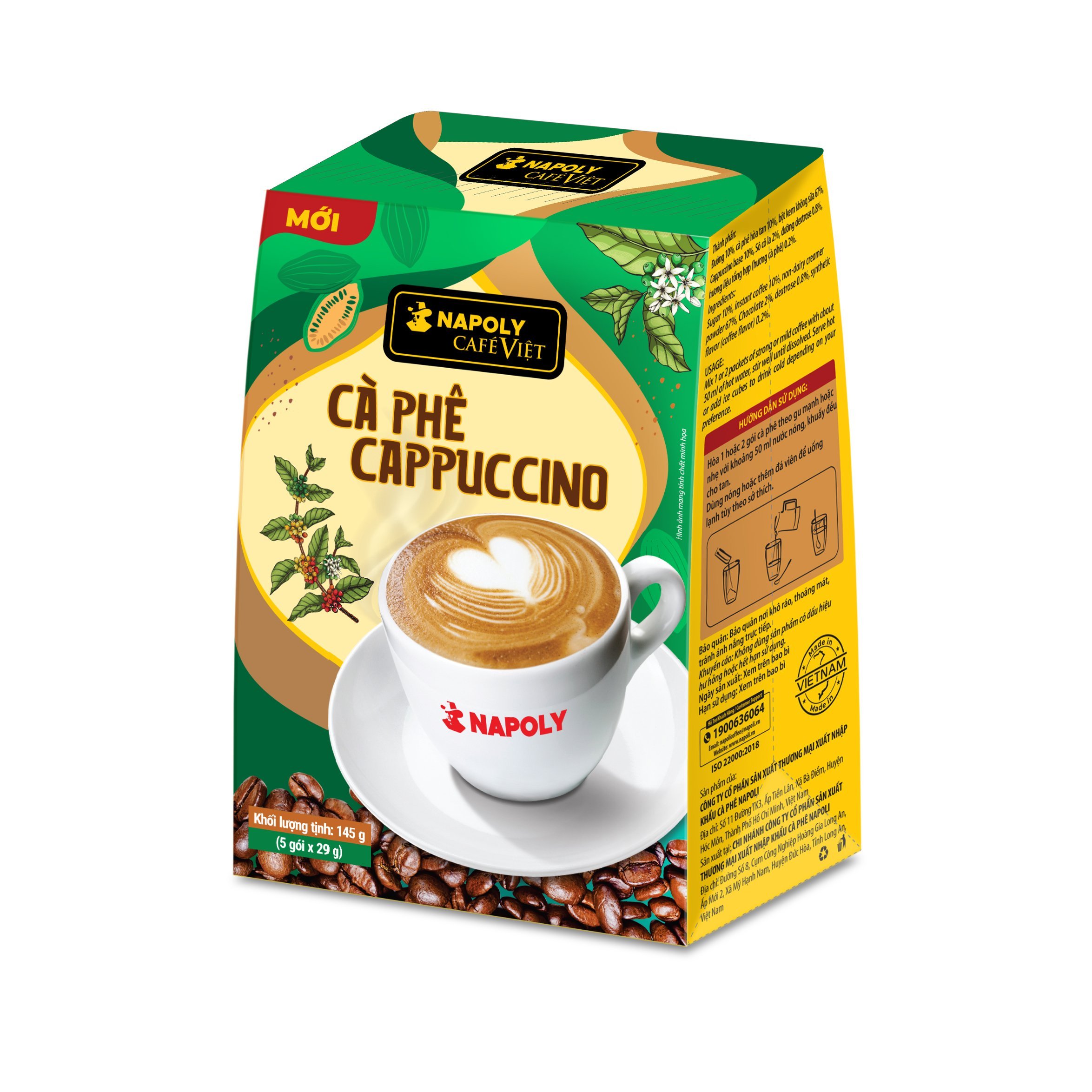 Mua tại TiktokHộp nhỏ cà phê sữa hòa tan Cappuccino đậm vị cà phê, sữa ngọt ngào, Socola béo ngậy thơm lừng Napoly Coffee (5gói x 29g) NAPOLI – CÀ PHÊ VIỆT – ĐẬM GU ĐÚNG CHẤT • CÀ PHÊ SẠCH:
