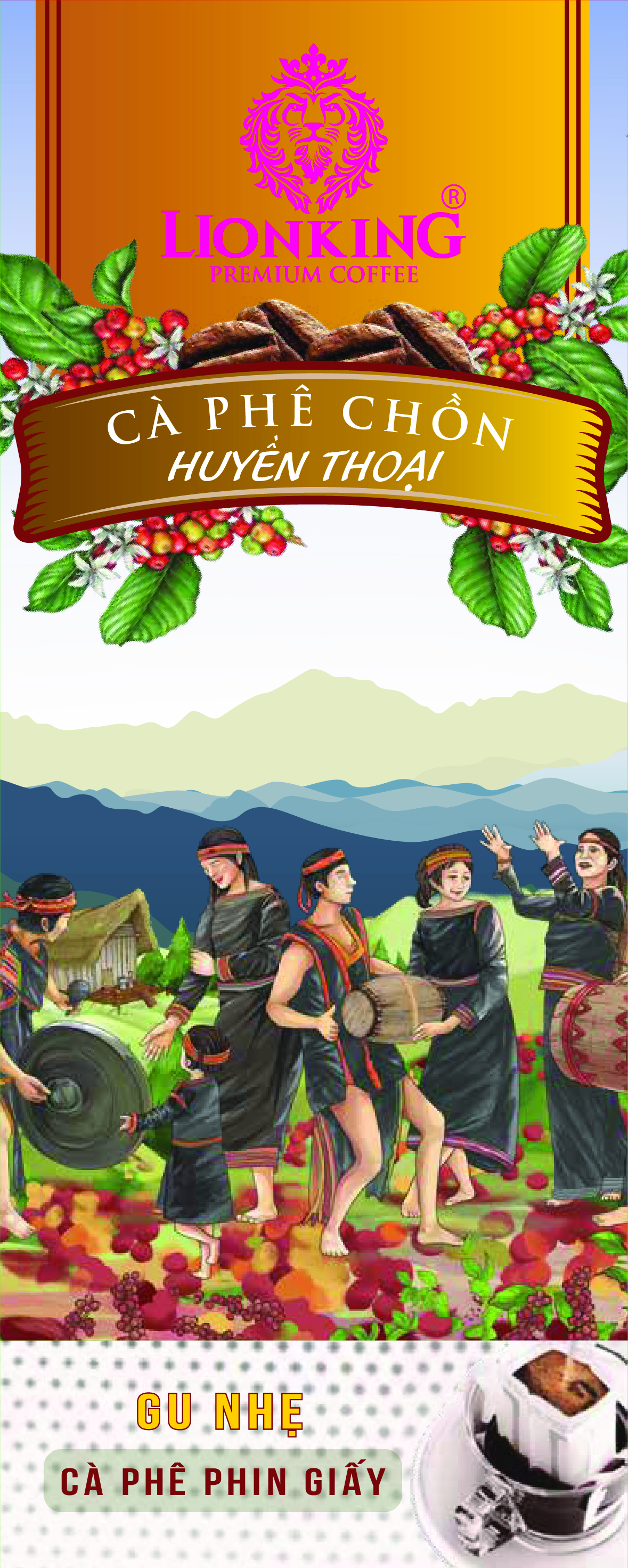 Thưởng thức tách cà phê mang cả tâm hồn từ núi rừng, nơi những thổ dân Ê Đê đã chắt lọc tinh hoa của đất trời kết hợp với công thức huyền thoại và công nghệ hiện đại cho ra đời dòng sản phẩm Cafe Phin Giấy LionKing Chồn Huyền Thoại hảo hạng, hài hoà của ngũ vị chua thanh, đắng dịu, ngọt nhẹ, chát nồng và thơm hương.