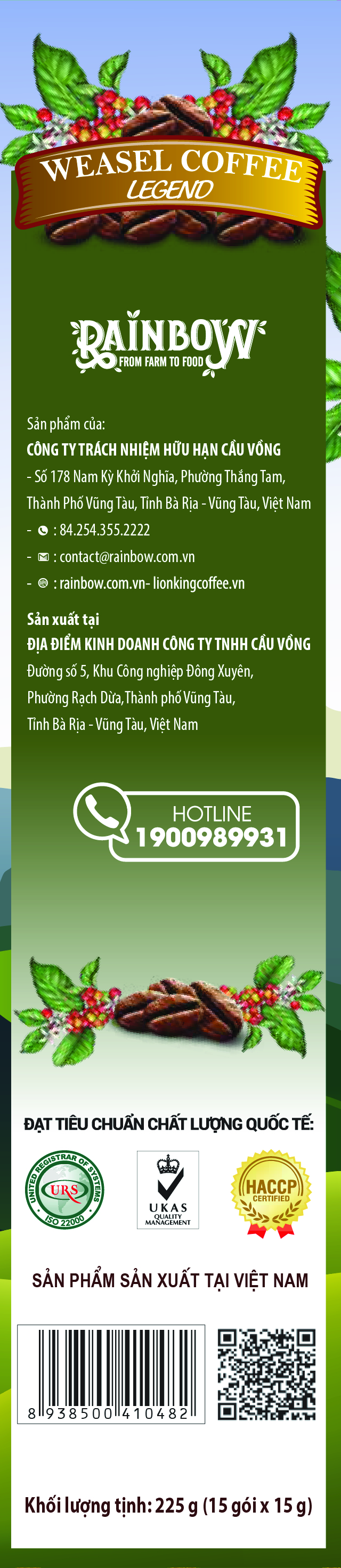 Thành phần: 60% Cà phê chồn Robusta, 40% Chồn Arabica