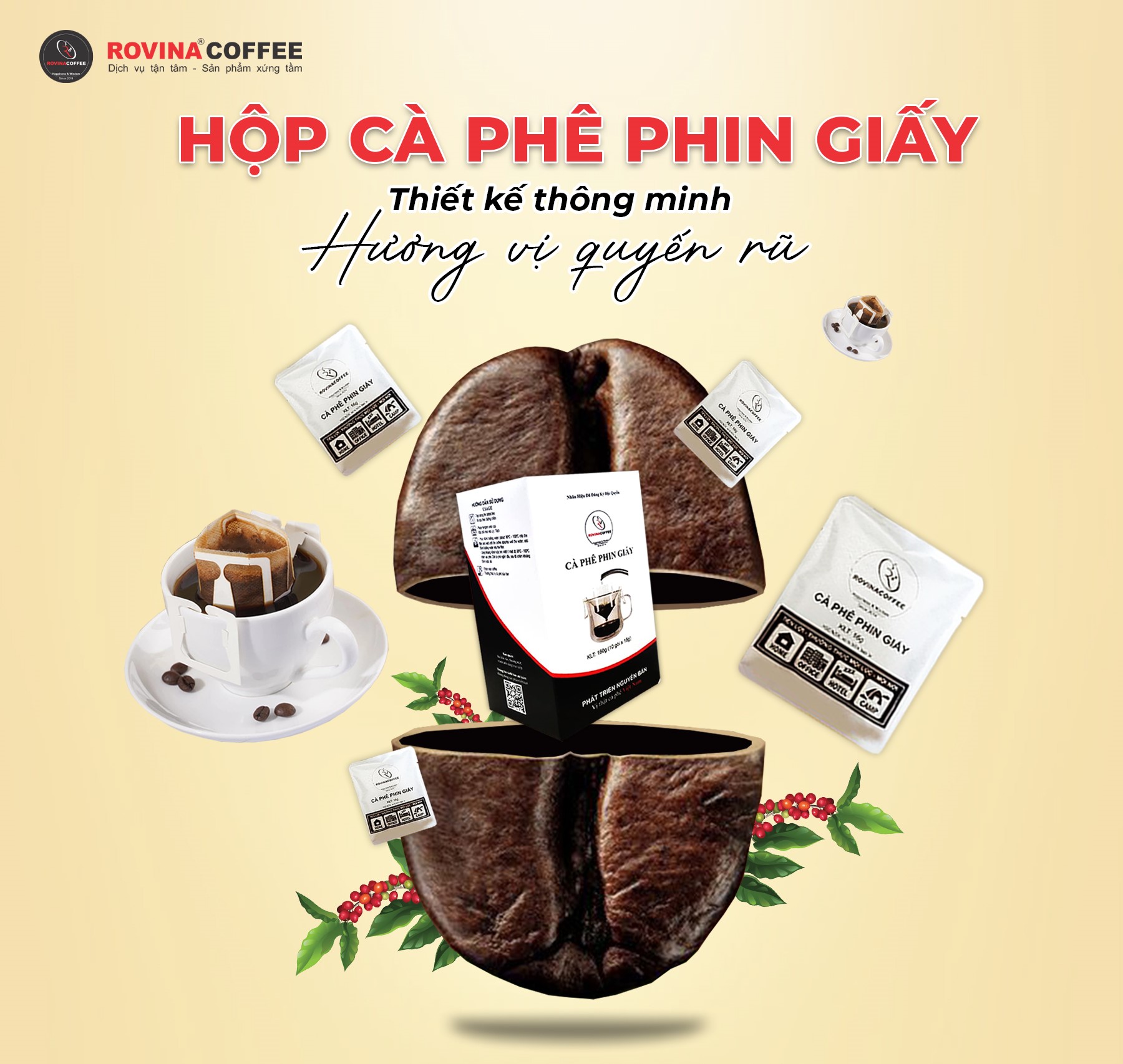 ✨Cà Phê Phin Giấy Rovina – Tiện Lợi – Mọi Lúc – Mọi Nơi Nguyên Chất 100%, Vẹn Tròn Hương Vị Nguyên Bản, Đậm Ngon Đúng Chất