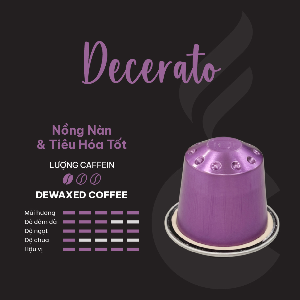 - Sản xuất tại Ý Hương vị đặc trưng từng loại: DECERATO – 10 NESPRESSO COMPATIBLE ALUMINUM CAPSULES DEWAXED COFFEEE CAPSULES, LESS ACIDITY, MORE DIGESTIBLE, INTENSE AROMA Carraro Decerato là sự lựa chọn tốt nhất cho những người tìm kiếm hương vị đậm đà và sự tinh tế. Nhờ quá trình tách lớp vỏ trấu hiện đại giúp giảm nồng độ axit của hạt cà phê. Chúng tôi thu được một loại cà phê hoàn hảo với các hương vị cân đối, hài hòa. DOLCI ARABICA – 10 NESPRESSO COMPATIBLE ALUMINUM CAPSULES 100% FINEST ARABICA Dolci Arabica chứa tám loại cà phê Arabica được lựa chọn kỹ càng. Trong hương thơm dịu nhẹ, đầy hoa của nó, có những gợi ý của hoa nhài và cánh hoa hồng, trong khi hương vị đậm đà, với những nốt hương ngọt ngào nổi bật. Nó có hậu vị dài, tinh tế. Nhờ vào hàm lượng caffeine thấp của các hạt cà phê Arabica được sử dụng, bạn có thể thoải mái thưởng thức nhiều lần trong ngày. Intensity: 8/14 INTENSO – 10 NESPRESSO COMPATIBLE ALUMINUM CAPSULES HARMONIOUS TASTE, BALANCED BODY The Intenso blend is made up of selected coffee varieties to create a balanced, and at the same time, intense taste. Flavours of dried fruits welcome the senses with a creamy enveloping texture and sweet hints of hazelnut. On the palate, it leaves a persistent bitter cocoa flavor. Intensity: 10/14 GRAN CREMA – 10 NESPRESSO COMPATIBLE ALUMINUM CAPSULES FULL BODY AND CREAMY Gran Crema capsule contains a blend which has been specially created to intensify the classic taste of coffee with the greater body and creaminess for which Italian espresso is renowned. Its distinctive selection is based on a contamination of the great, sweet Central American Arabica beans with the best Brazilian Santos varieties. Extra body is given to the blend by the addition of fine Indian and Indonesian Robusta beans. Intensity: 9/14 RISTRETTO – 10 NESPRESSO COMPATIBLE ALUMINUM CAPSULES STRONG ROASTED, INTENSE AROMA Ristretto is a blend with a strong and decisive personality. It has a full and creamy body accompanied by hints of chocolate and pleasant spicy notes. Intensity: 12/14 The trademark Nespresso is not property of Caffè Carraro S.p.A. or other connected companies DECAFFEINATO – 10 NESPRESSO* COMPATIBLE ALUMINUM CAPSULES DECAFFEINATED Decaffeinato capsule is built on Caffè Carraro’s research and experience since 1927. This espresso is the product of ongoing selection of the most suitable green coffee beans and continual research into decaffeination processes that aim to preserve the beverage’s wonderful qualities of compact and long-lasting creaminess, a fragrant and fruity aroma, and a full, smooth flavour without the impact of caffeine. Intensity: 7/14 Cubes Asia là nhà nhập khẩu độc quyền thương hiệu cà phê Carraro từ Ý.