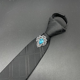 Cà vạt 6cm màu đen thắt sẵn kẻ ziczac đính đá xanh sang trọngCà vạt 6cm màu đen thắt sẵn kẻ ziczac đính đá xanh sang trọng