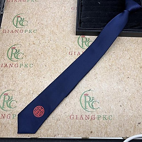 Cà vạt nam chú rể màu xanh đen song Hỷ đỏ tròn mẫu 6cm dây kéo thắt sẵn màu xanh đen kẻ tăm