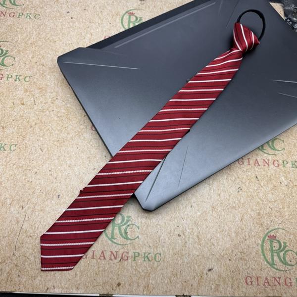 ✨Cà vạt nam mẫu thắt sẵn dây kéo bản nhỏ 6cm mẫu đỏ kẻ trắng đen