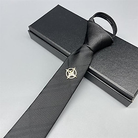 Cà vạt nam thắt sẵn 6cm màu đen hoạ tiết gắn tag cài thời trang 2024