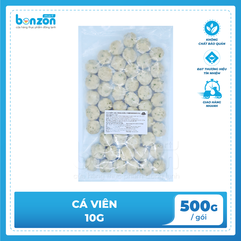 Mua tại TiktokVới sản phẩm tươi sống, trọng lượng thực tế có thể chênh lệch khoảng 10%. ĐỊNH LƯỢNG: 10g/Cái - 500g/gói THÀNH PHẦN: Cá, mỡ heo, trứng gà, gừng, tỏi, hành lá, ngò rí, gia vị MÔ TẢ SẢN PHẨM: - Sản phẩm có màu trắng đặc trưng của cá, điểm xanh của hành ngò - Sản phẩm có độ dai, giòn và thơm đặc trưng CÁCH CHẾ BIẾN: - Không rã đông - Hấp: 100°C trong 2-3 phút - Chiên: Ở 170°C, thời gian 1-2 phút - Thả lẩu HSD: 12 tháng