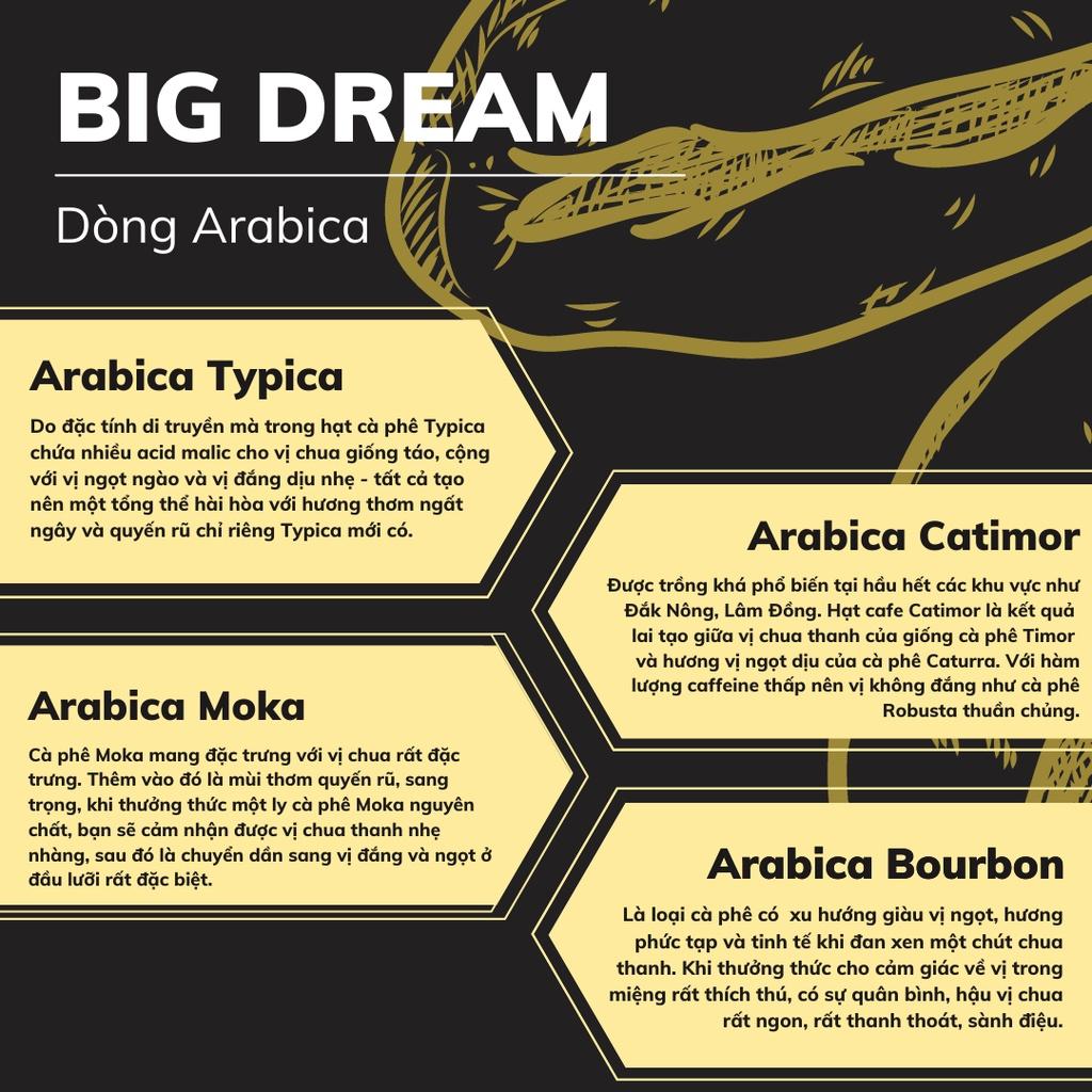Cafe việt ARABICA CATIMOR 125g cà phê nguyên chất hương vị chua thanh đắng nhẹ tinh tế pha Espresso - Big Dream Coffee Cà phê Catimor là giống cà phê lai chéo cà giữa Timor