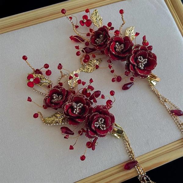 Cài tóc cô dâu hoa đỏ thiết kế thủ công cao cấp #short