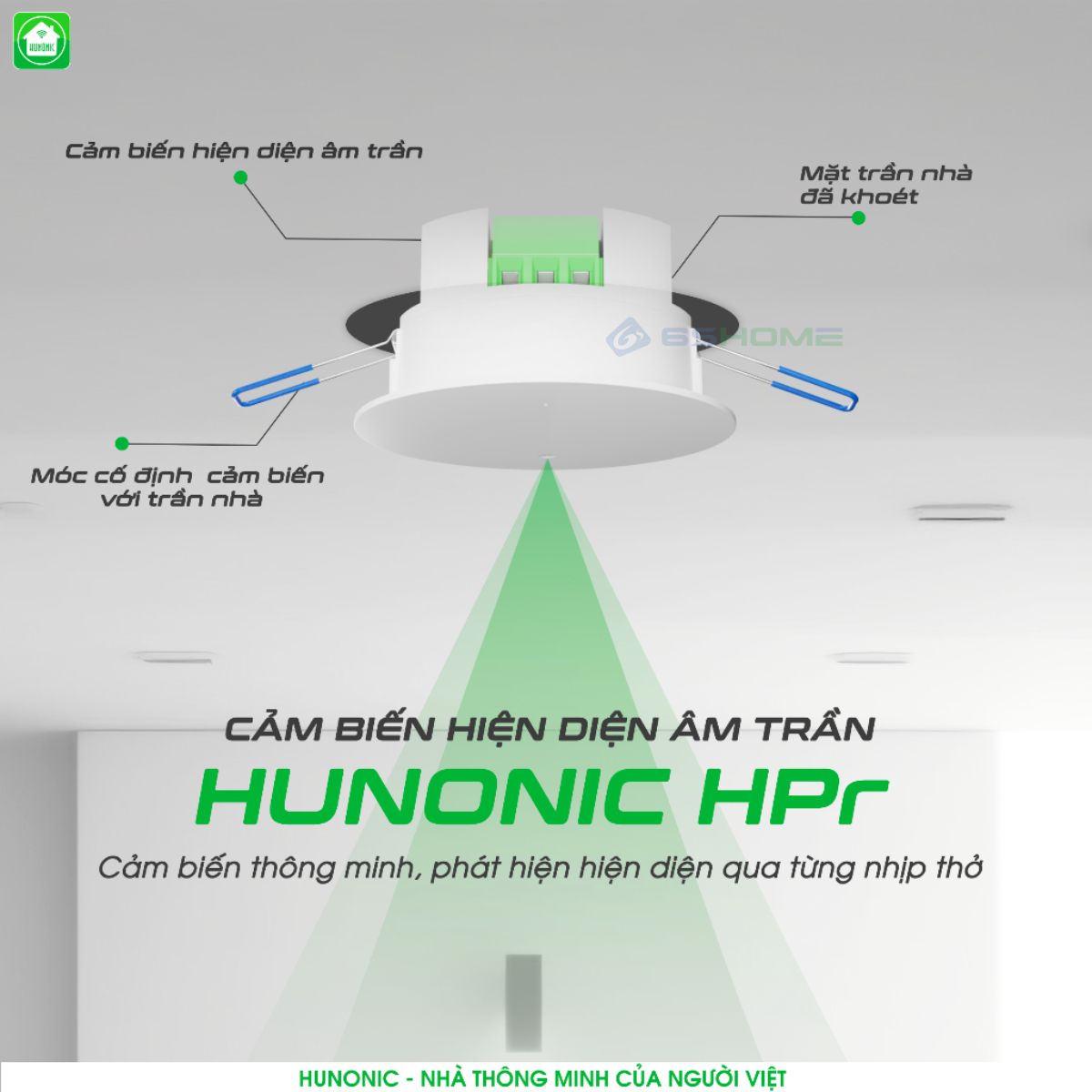 Cảm Biến Hiện Diện Ốp Trần, Âm Trần Hunonic HPR - Phát Hiện Chính Xác Người, Đèn Bật Tắt Tự Động, BH 1 Năm