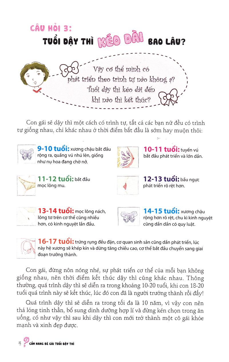 Đây là những cuốn cẩm nang quý giá giúp các bậc phụ huynh cùng những cô gái nhỏ của mình bước vào tuổi dậy thì tươi đẹp với tâm lí sẵn sàng và thoải mái!