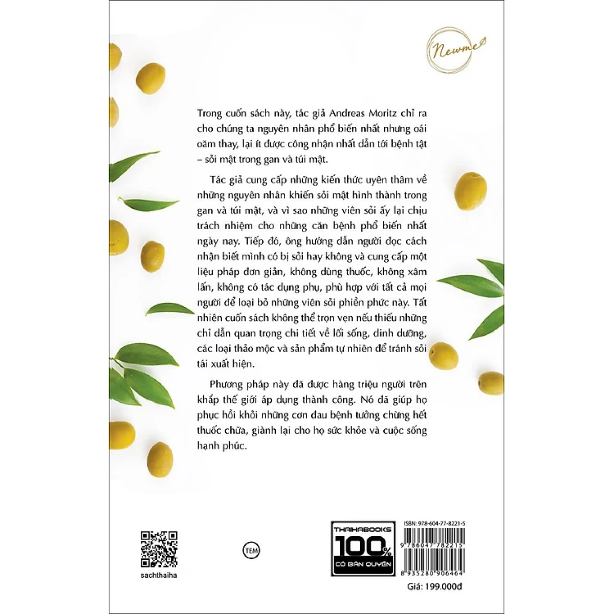 Thông qua cuốn sách “Cẩm nang hướng tẩy sỏi gan mật – Phương pháp diệu kỳ cho sức khoẻ dài lâu” của tác giả Andreas Morits, bạn sẽ học được cách nhẹ nhàng loại bỏ vài trăm viên sỏi mật trong một lần tẩy sỏi. Kích thước của chúng dao động từ hạt vừng đến hạt óc chó nhỏ (2 – 3cm), trong một số trường hợp hiếm hoi, sỏi có thể to bằng quả bóng chơi golf. Quá trình tẩy sỏi gan thực sự diễn ra trong khoảng dưới 14 giờ và có thể được thực hiện dễ dàng tại nhà vào cuối tuần.