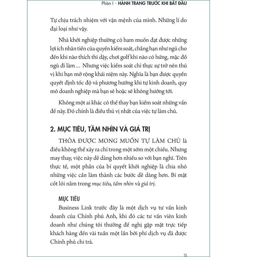 Mục tiêu đầu tiên của cuốn sách là tổng kết ngắn gọn những thách thức và những mối băn khoăn thường gặp khi một người bắt đầu công việc kinh doanh. Từ đó, đưa ra những đề xuất để bạn đọc có thể giải quyết các vấn đề đó bằng phương pháp đơn giản nhưng vô cùng hiệu quả. Những nhà khởi nghiệp có thể học tập nhiều hơn từ những kinh nghiệm thực tế được chia sẻ và phân tích tỉ mỉ