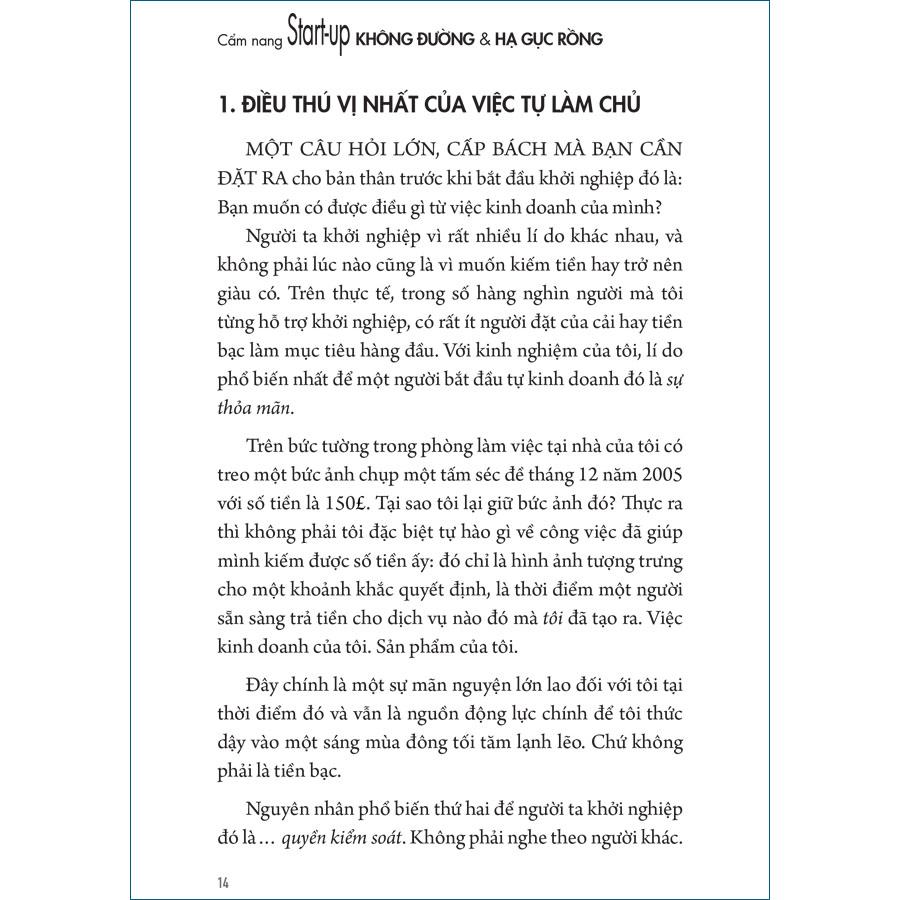 Trong cuốn sách “Cẩm nang Startup”, nội dung sẽ chỉ chú trọng vào những yếu tố quan trọng nhất, mang tính nền tảng. Đó là những kiến thức mà bạn thực sự cần biết nếu muốn bắt doanh nghiệp nhỏ. Tìm hiểu kỹ về từng chương, bạn sẽ có thể vạch ra cho mình một lộ trình hiệu quả, đưa ra từng bước cho công việc phát triển hoạt động kinh doanh, vận hành công ty Startup. Ngoài ra, có không ít bí quyết, bài học trong cuốn sách đóng vai trò cực kỳ quan trọng trong việc vận hành hoạt động kinh doanh ban đầu nhưng thường không được chú ý và bị bỏ qua.