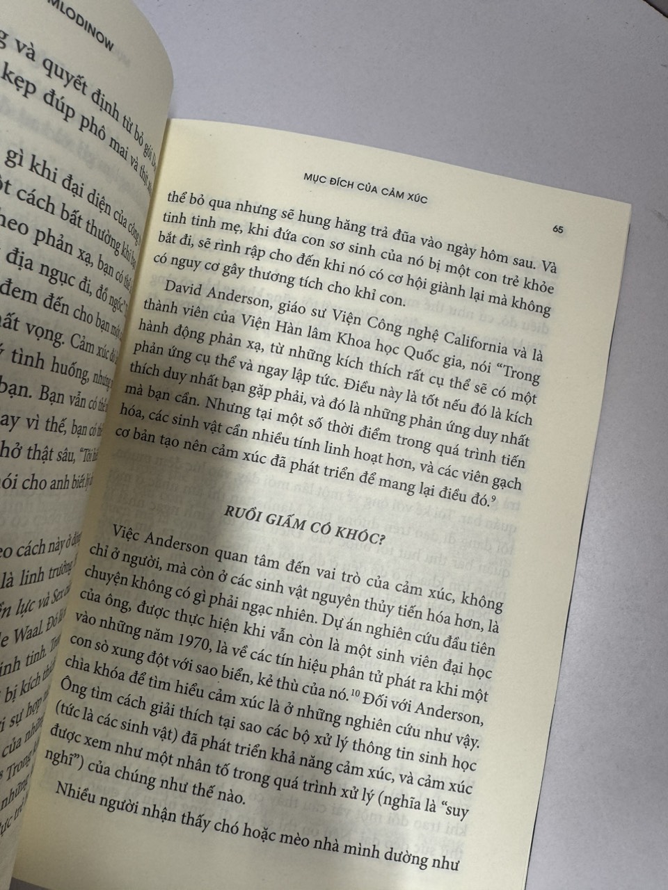 Từ lâu, người ta đã nói rằng suy nghĩ và cảm giác là những lực lượng riêng biệt và đối lập nhau trong hành vi của chúng ta. Nhưng như Leonard Mlodinow nói với chúng ta, những tiến bộ phi thường trong tâm lý học và khoa học thần kinh đã chứng minh rằng cảm xúc cũng rất quan trọng đối với sức khỏe. Làm thế nào bạn có thể kết nối tốt hơn với những người khác? Làm thế nào bạn có thể cảm nhận được sự thất vọng, sợ hãi và lo lắng của mình? Bạn có thể làm gì để sống một cuộc sống hạnh phúc hơn? Câu trả lời nằm ở việc hiểu được cảm xúc của mình. Với những hiểu biết sâu sắc về quá trình tiến hóa và sinh học của con người, Mlodinow cung cấp cho chúng ta các công cụ để hiểu cảm xúc bản thân tốt hơn và tối đa hóa lợi ích của chúng.