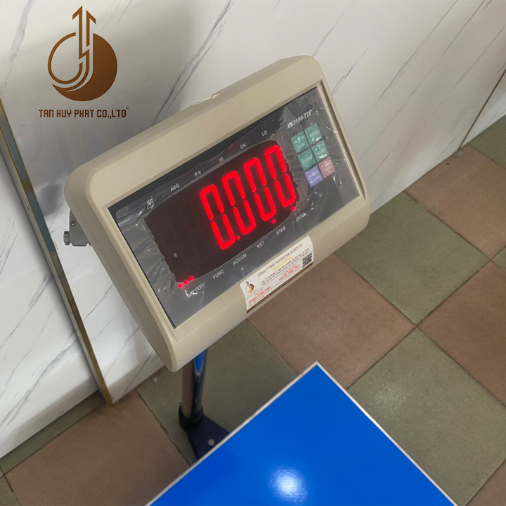 Chất liệu cân: Khung cân hợp kim thép vuông 4 sơn tĩnh điện dày 1.5 ly, mặt bàn cân inox dày 1.5 ly, đầu chỉ thị nhựa ABS.