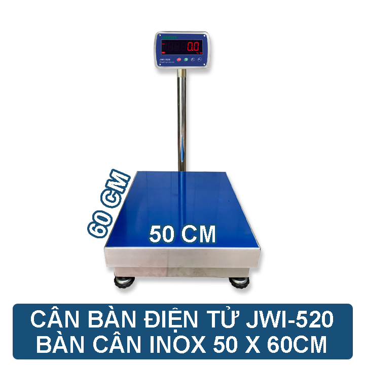 CÂN BÀN ĐIỆN TỬ JWI-520, THIẾT KẾ KIỂU DÁNG MẶT BÀN CÂN THẤP, ĐẦU CHỈ THỊ GẮN TRÊN TRỤ CAO, KÍCH THƯỚC MẶT BÀN CÂN 50 CM X 60 CM (R X D)