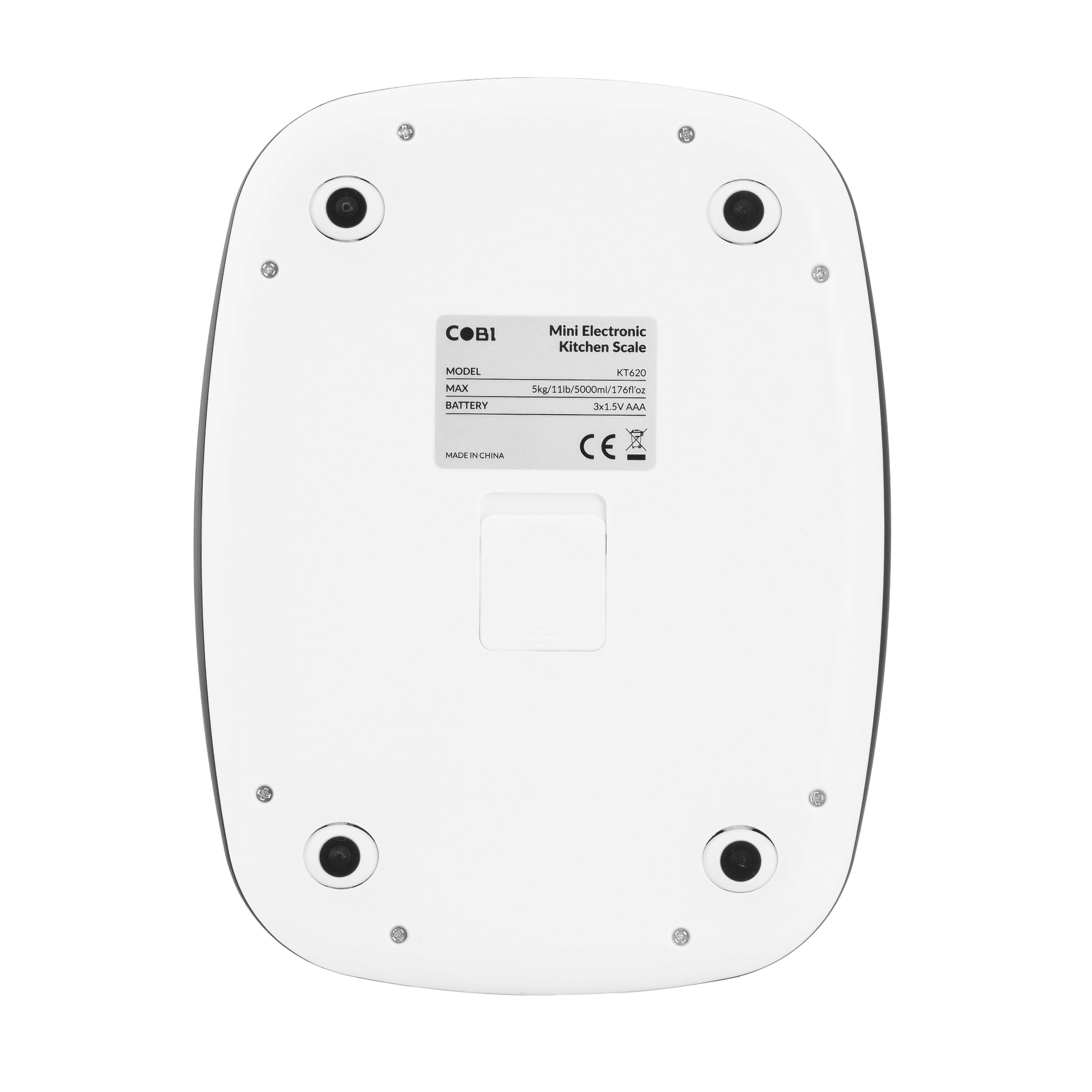 Vỏ kim loại tráng phủ bột mịn Chân chống trượt Phạm vi đo lên đến 5 kg (11 lb) Tổng (kể cả bát): xấp xỉ W 24,5 x H 21,2 x D 24,5 cm Bát: