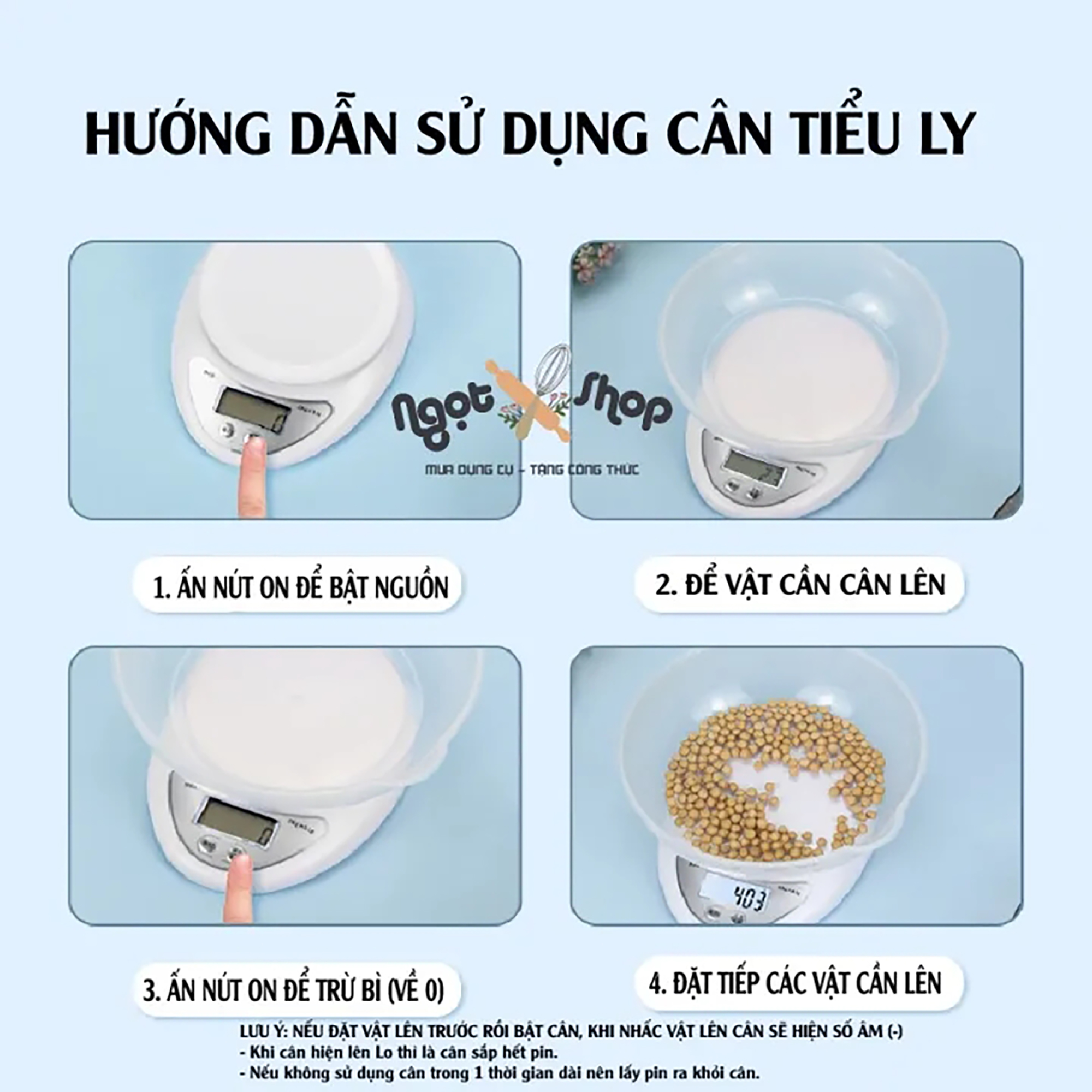 Khả năng cân từ đơn vị 1g. Cân tối đa: 5kg.