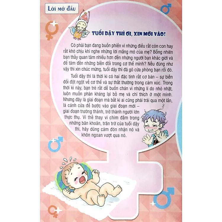 • TUỔI DẬY THÌ ỚI, XIN MỜI VÀO! Có phải bạn đang buồn phiền vì những điều rất còn con hay rất khó chịu khi nghe những lời mắng mỏ của mẹ? Bỗng nhiên bạn thầy quan tâm nhiều hơn đến những người bạn khác giới và để tâm đến những biến đổi trong cơ thể mình? Nếu đúng như vậy thì xin chúc mừng, tuổi dậy thì đã gõ cửa phòng bạn rồi đó. Tuổi dậy thì là thời kì có hai đặc tính rất cơ bản – sự biến đổi đột ngột vẻ cơ thể và sự thất thường trong cảm xúc.