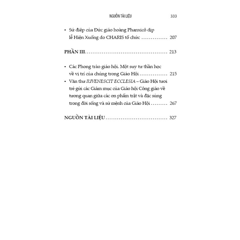 Cuốn sách này tổng hợp một số tài liệu của huấn quyền Giáo Hội Công Giáo, liên quan đến điều mà chúng ta thường gọi là “Canh tân Đặc sủng”; bên cạnh những tài liệu của huấn quyền, cũng có một vài tài liệu khác được giới thiệu nhằm trình bày thêm về một số điểm. Cuốn sách ước mong mang lại cho độc giả những hướng dẫn, chỉ dạy của huấn quyền về các phong trào, hiệp hội giáo hội và các cộng đồng mới, đặc biệt là về Canh tân Đặc sủng Công giáo, để giúp chúng ta có một cái nhìn đúng theo như đường hướng của Giáo Hội. Cuốn sách này gồm có ba phần.