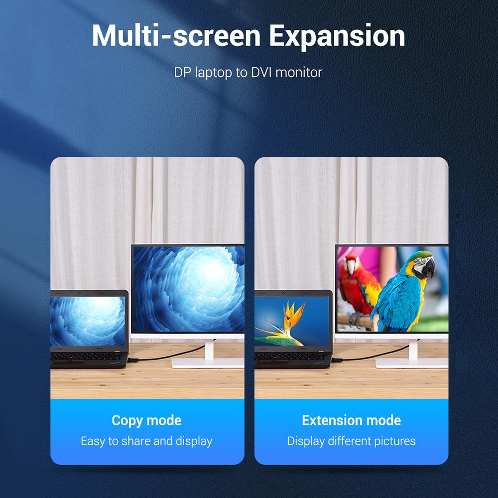 VENTION DVI to VGA HD Cable is designed for DVI24+5 display card interface. It supports two modes and large screen. Dual magnet ring resists signal interference.It supports DVI+ 24+5 standard interface. Do not support DVI