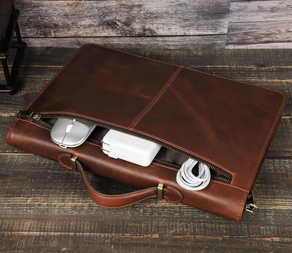 Thiết kế đơn giản nhưng tinh tế Chất liệu da thật cao cấp (da ngựa hoặc da bò) Giữ an toàn cho máy tính xách tay của bạn Chống văng nước, chống bám bụi, không