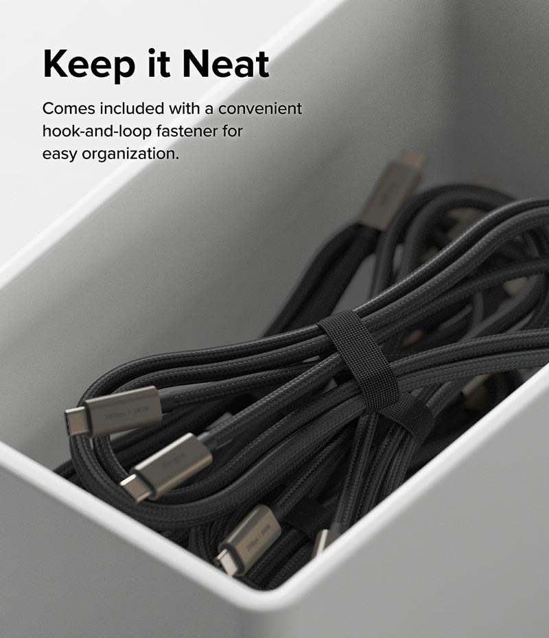 Tăng cường độ bền Cáp Ringke USB 3.2 Gen 2X2 USB-C Cable có cấu trúc lõi chất lượng cao giúp giảm khả năng mất dữ liệu, hỗ trợ chất lượng hình ảnh rõ nét và cung cấp khả năng sạc ổn định. Sợi cáp bên ngoài được làm từ chất liệu nylon đảm bảo độ bền, chắc chắn, chống rối và chống trơn trượt khi cầm nắm.
