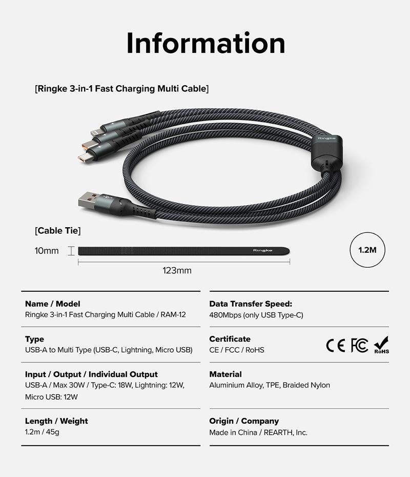 Cáp sạc nhanh đa năng RINGKE 3-in-1 Fast Charging Multi Cable 1.2M