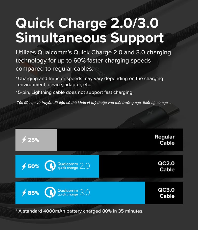 Hỗ trợ sạc nhanh với điên áp tải ra 3.5A Baseus 4 In 1 có điện áp tải ra 3.5A có khả năng sạc nhanh giúp tiết kiệm thời gian sạc và đồng bộ dữ