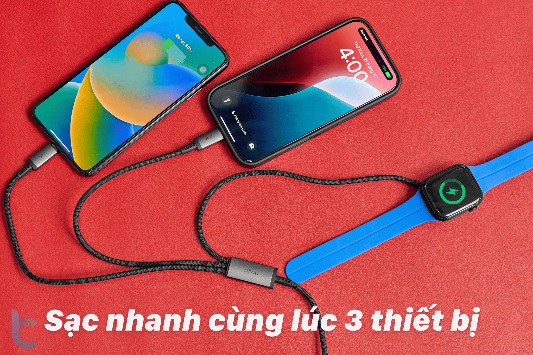 Sản phẩm: Cáp sạc nhanh 3 trong 2 Legend 100W Mẫu: Wi-C050 Cổng: USB-A+USB-C sang Bộ sạc USB-C +iP+Watch Nguồn điện (USB-A sang USB-C): 18W; (USB-A đến iP): 12W; (USB-A đến Watch): 2,5W (USB-C sang
