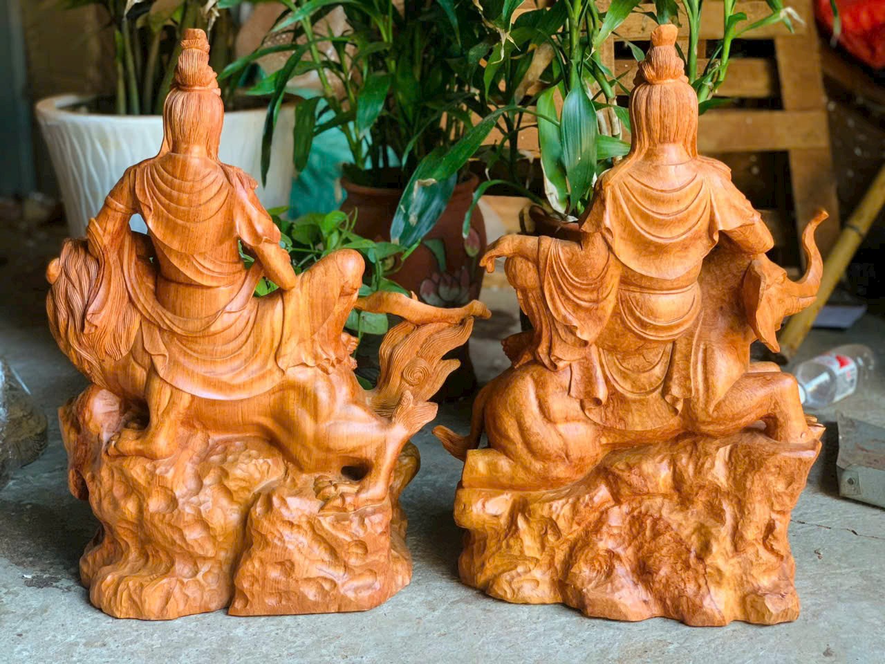 Cặp Tượng văn thù phổ hiền bồ tát được làm chất liệu gỗ hương liền khối tự nhiên liệu 100%