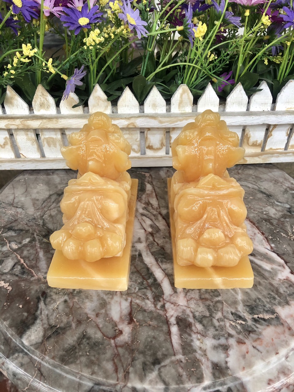 Mua tại TiktokHợp mệnh Thổ - Kim Chất liệu: Đá ngọc hoàng long Kich thước: Dài 12cm x Rộng 6cm x Cao 10cm Khối lượng: 1,6 kg / cặp