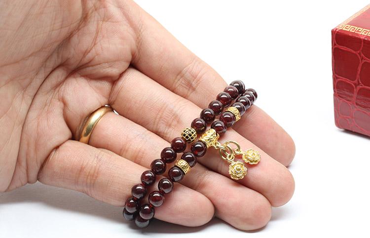 Chuỗi 3 vòng Garnet viên tròn đỏ mọng size 5mm mix charm vàng 24K