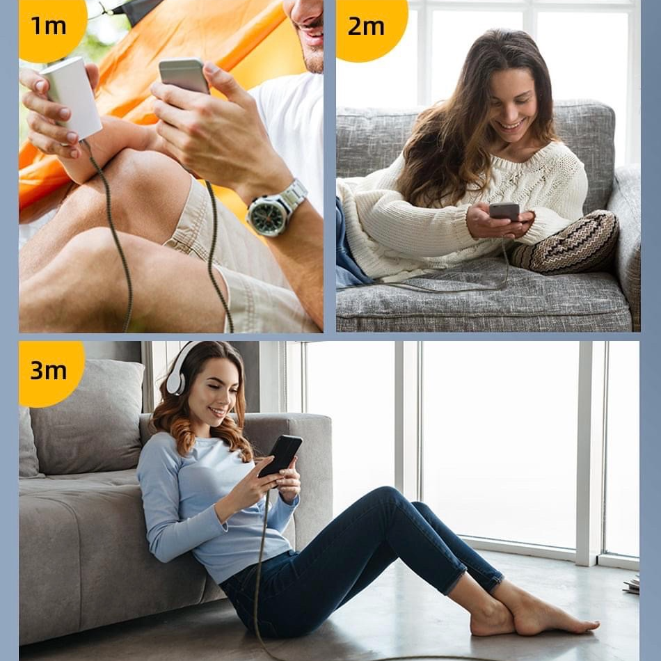 Chiều dài: 1m, trọng lượng: 20g. Cổng USB và Micro usb, hỗ trợ sạc điện thoại di động và truyền dữ liệu, đánh giá hiện tại là khoảng 2A (có thể hỗ trợ 9V 2A
