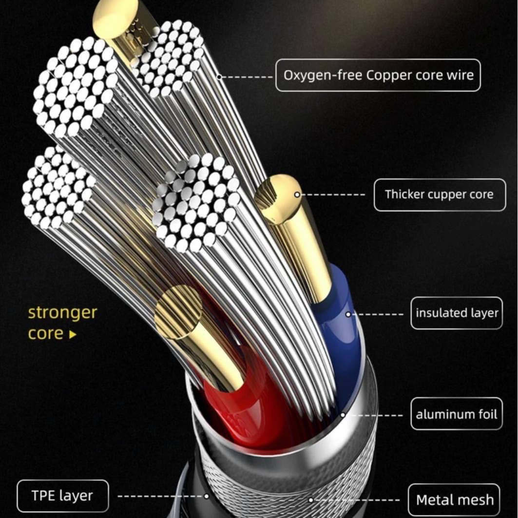 ƯU ĐIỂM SẢN PHẨM - Dây cáp sạc nhanh 3 đầu ip typeC micro Rockspace Hi-Tensile truyền điện, data nhanh hơn nhiều so với cáp mạ thông thường. - Dây cáp sạc nhanh 3 đầu