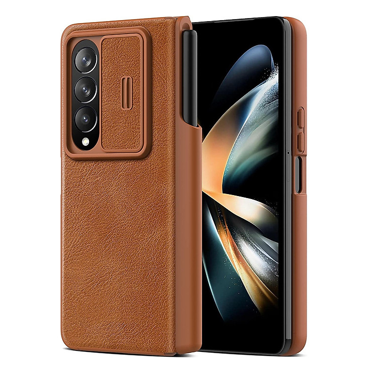 Case bao da chống sốc cho Samsung Galaxy Z Fold 4 trang bị nắp bảo vệ Camera và ngăn đựng S-Pen hiệu Nillkin Qin Pro (chất liệu da cao cấp, thiết kế thời trang cá tính)