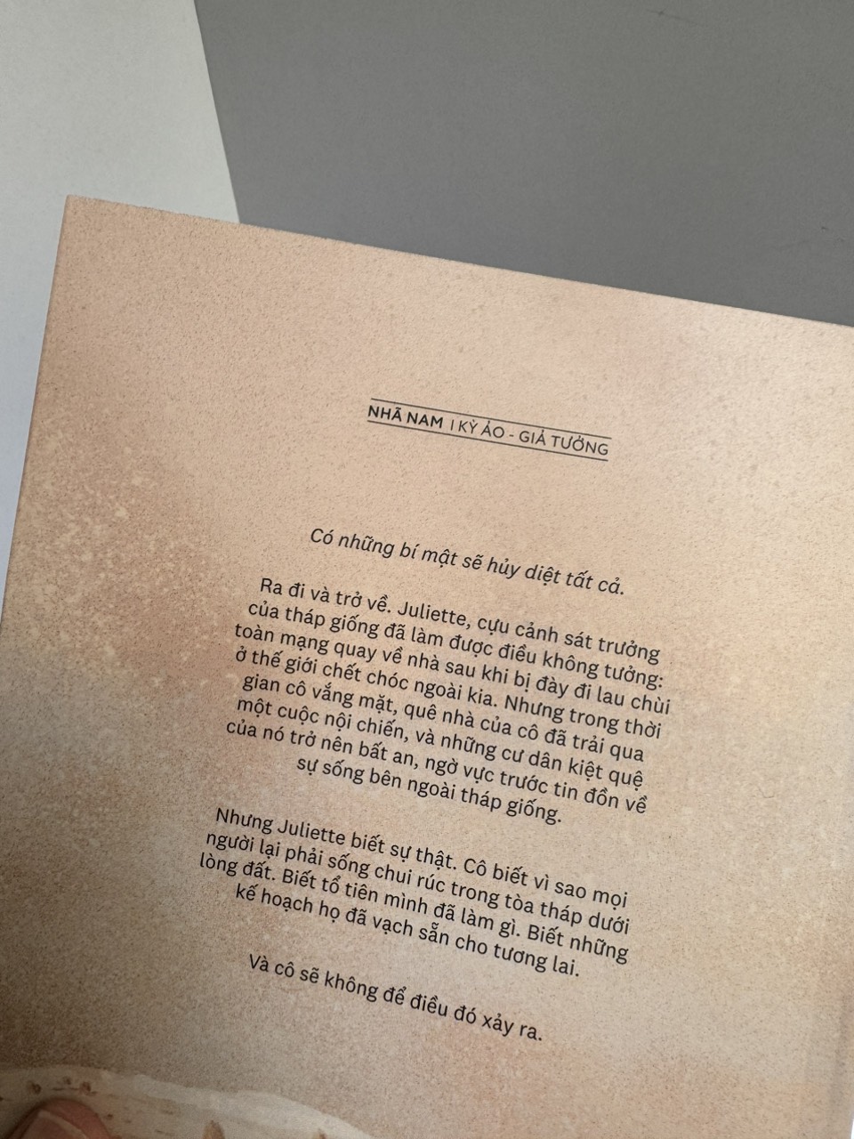 Nhưng Juliette biết sự thật. Cô biết vì sao mọi người lại phải sống chui rúc trong tòa tháp dưới lòng đất. Biết tổ tiên mình đã làm gì. Biết những kế hoạch họ đã vạch sẵn cho tương lai.