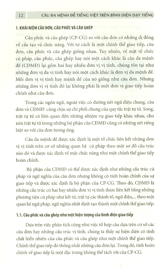Đối tượng nghiên cứu của tài liệu này là những câu có hơn một đơn vị tính và được các tác giả truyền thống gọi là câu phức và câu ghép, được chúng tôi gọi là câu đa mệnh đề. Mục đích của tài liệu là: (1) Mô tả đặc trưng cấu trúc của hệ thống phát ngôn - cầu mà các tác giả truyền thống thường gọi câu phức/câu đơn phức tạp hoá và câu ghép tiếng Việt, phục vụ cho việc dạy tiếng Việt như một ngoại ngữ và ngôn ngữ thứ hai. (2) Mô tả đặc trưng ngữ pháp, ngữ nghĩa, cách dùng của cầu đa mệnh đề tiếng Việt. Nhiệm vụ của công trình là trên cơ sở tổng kết, kế thừa những thành tựu của ngữ pháp học tiếng Việt đã đạt được trong thời gian vừa qua, từng bước đi sâu thêm để có thể mô tả các kiểu loại cầu đa mệnh để, mô tả một cách chi tiết các đặc trưng ngữ pháp, ngữ nghĩa, ngữ dụng của nó, đặc biệt, nhấn mạnh vào cách hình thành loại câu này. Tìm ra một số biến thể thường gặp trong văn bản và trong hội thoại tiếng Việt để mô hình hoá, hệ thống hoá chung với tư cách là một đơn vị “đầu vào” trong giảng dạy tiếng Việt cho học viên quốc tế. Trên cơ sở đặc thù của cầu đa mệnh đề và phương pháp tiếp cận hiện đại, chúng tôi để xuất một số cách thức giảng dạy loại đơn vị rất cơ bản này của tiếng Việt cho học viên quốc tế. Công trình này; vì thế, trả lời cho câu hỏi dạy cầu đa mệnh để cho học viên quốc tế là dạy cái gì và dạy như thế nào?