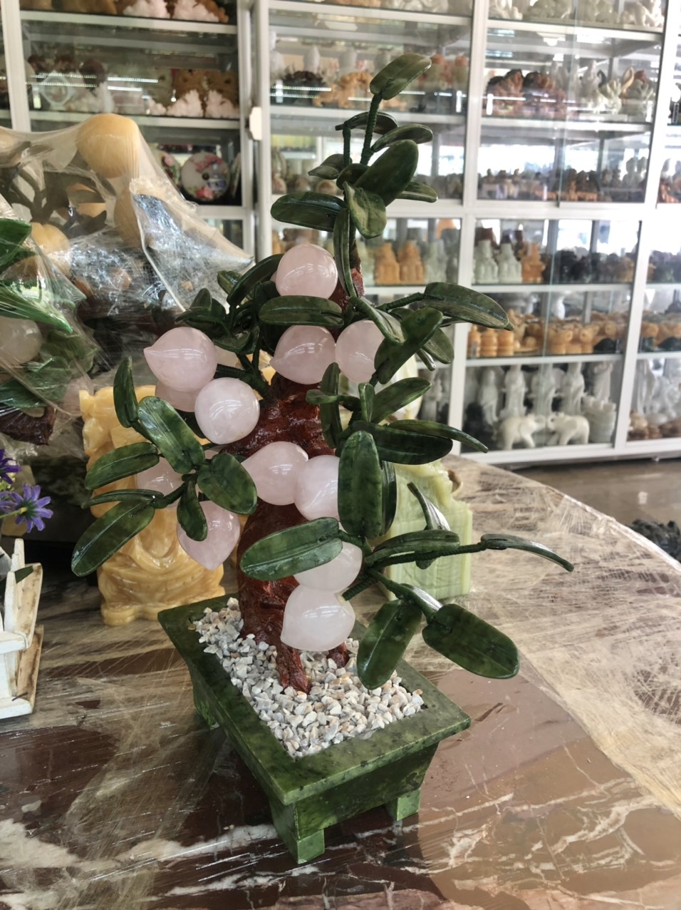 Cây đào tài Lộc 38 quả bằng đá phong thủy Thạch Anh Hồng tự nhiên #daquy