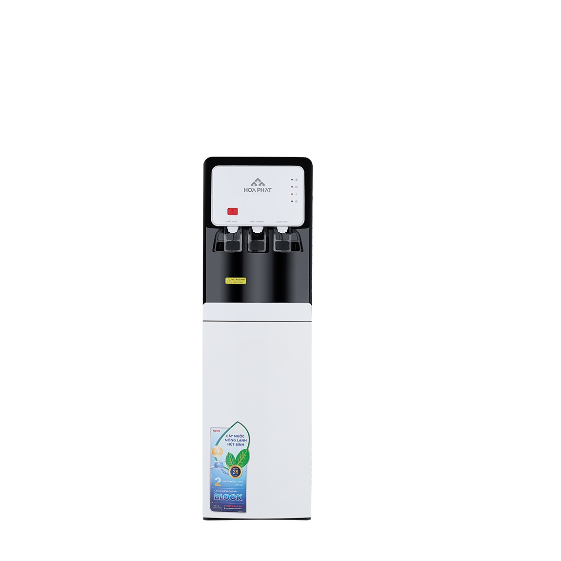 - Bảo hành vượt trội lên tới 24 tháng đối với các linh kiện làm lạnh. Cây nước nóng lạnh hút bình Hòa Phát HWP B2CI có 3 chế độ nước tiện lợi, công suất làm nóng lớn và hiệu suất làm lạnh hiệu quả. Kiếu dáng sang trọng, chắc chắn. 3 chế độ nước tiện lợi: Nóng, lạnh và nguội