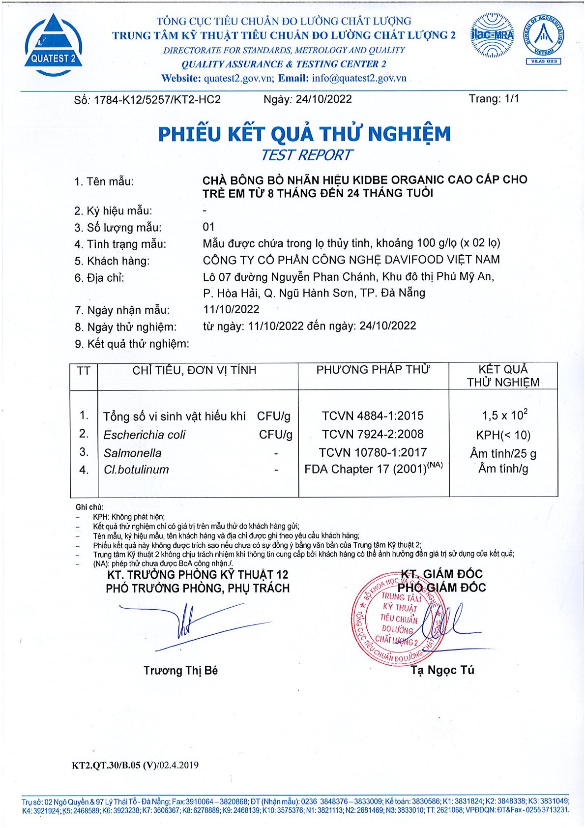 • Chà bông bò mật ong KIDBE ORGANIC là sản phẩm do Công ty Cổ phần Công nghệ Davifood Việt Nam nghiên cứu và phát triển; được làm từ 100% thịt bò đùi tươi kết hợp với các loại gia vị hoàn toàn tự nhiên lựa chọn kỹ lưỡng, trên dây chuyền thiết bị công nghệ hiện đại khép kín theo tiêu chuẩn HACCP, giữ nguyên hương vị và giá trị dinh dưỡng, đảm bảo an toàn vệ sinh thực phẩm.