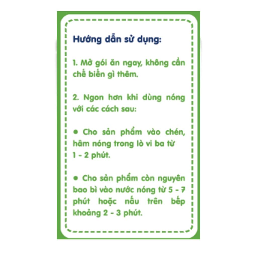 • Mở gói, cho sản phẩm vào chén, hâm nóng trong lò vi ba từ 1 – 2 phút.