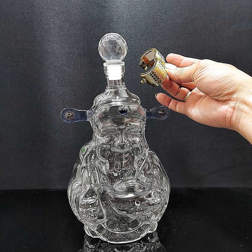 Chai Đựng Rượu Thủy Tinh 1000ML cao cấp mẫu Thần Tài Chai thủy tinh đựng rượu 1 Lít – Vỏ Chai Rượu Đẹp decor (E8) Glass bottle 1000ml – God of Wealth design - 1